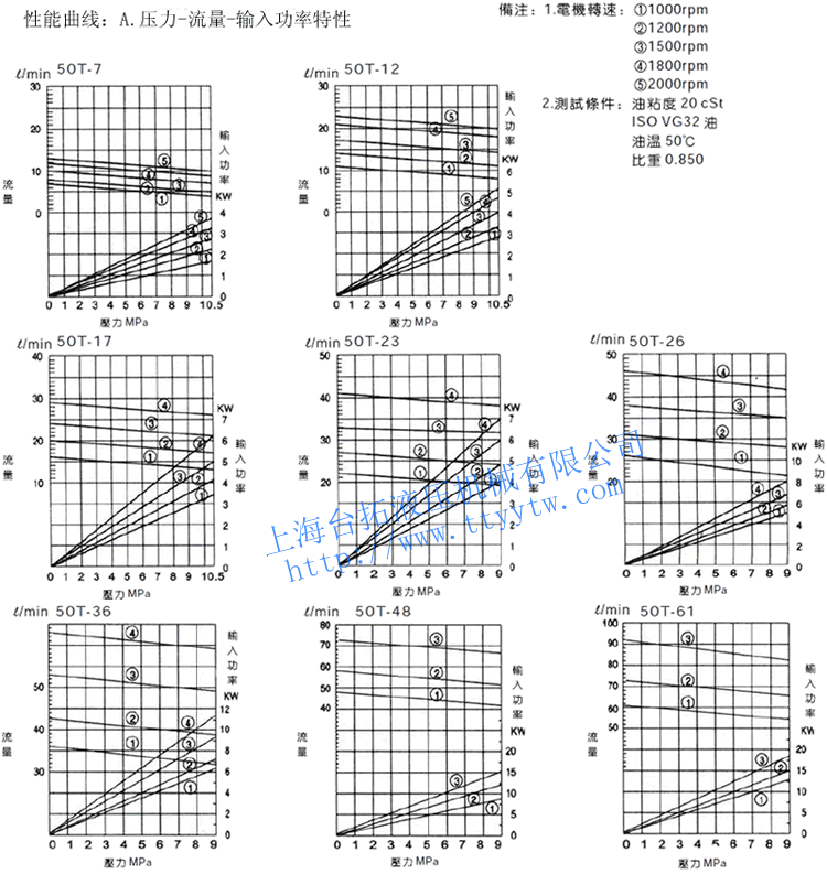 低壓定量葉片泵50T性能曲線