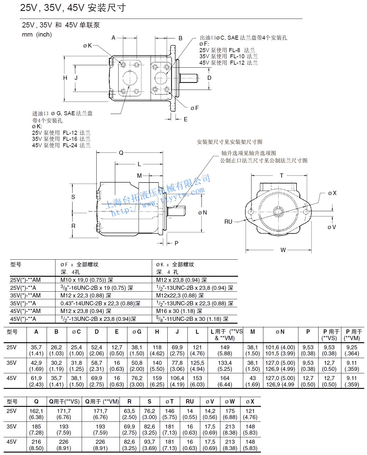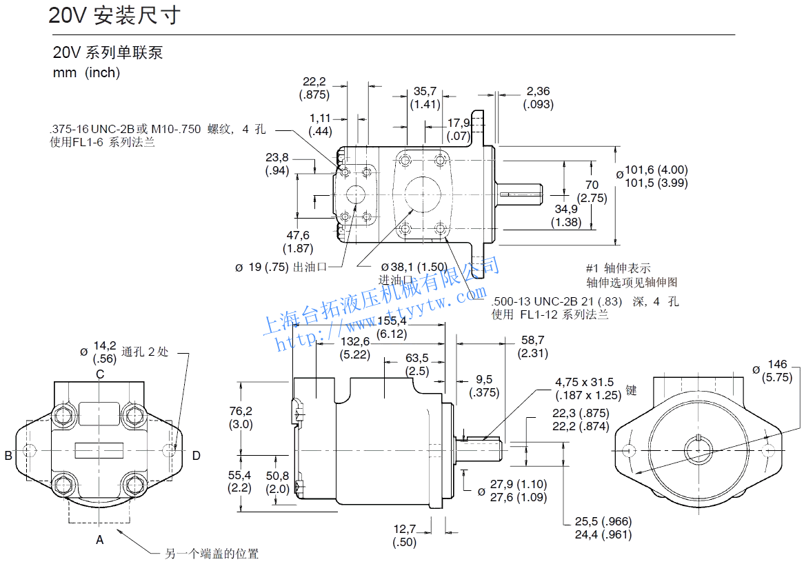 高壓低噪聲子母葉片泵20V系列單泵尺寸圖下載 高壓低噪聲子母葉片泵25V,35V,45V單泵尺寸圖下載