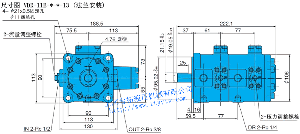 雙聯(lián)低壓變量葉片泵VDR-11A-*-13尺寸圖下載 雙聯(lián)低壓變量葉片泵VDR-11B-*-*-13尺寸圖下載