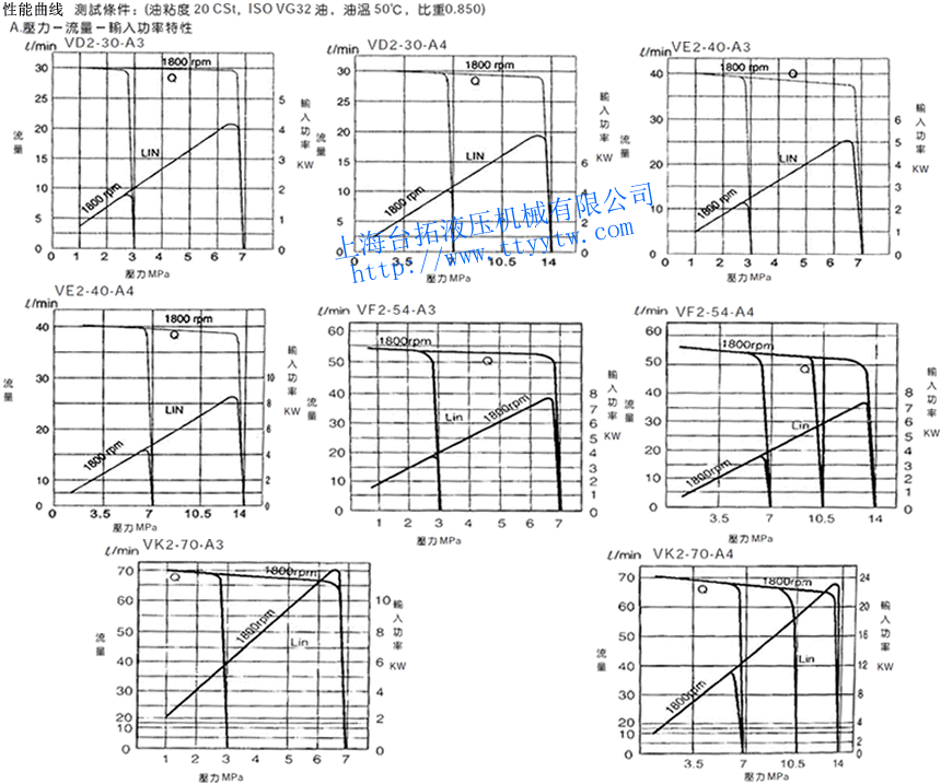 中高壓雙聯變量葉片泵VD2D2~VK2K2性能曲線