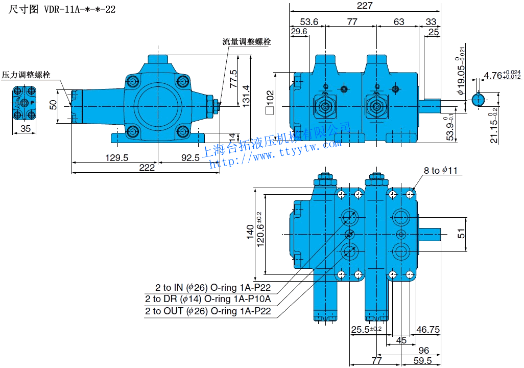 壓力Mpa最低 最高 VDR-11A(B)-1A2-1A2-22 30 1.5~3.5 30 1.5~3.5 14 800 1800 17 VDR-11A(B)-1A2-1A3-22 3~7 VDR-11A(B)-1A3-1A3-22 3~7 3~7 VDR-11A(B)-2A2-2A2-22 40 1.5~3.5 40 1.5~3.5 14 800 1800 17 VDR-11A(B)-2A2-2A3-22 3~7 VDR-11A(B)-2A3-2A3-22 3~7 3~7 備注:從設計數21更改為22號的設計代表了從3.2毫米寬的半月鍵變化為4.76毫米。
