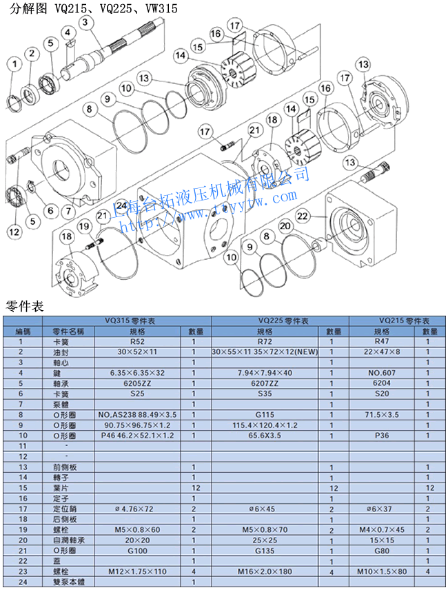 高壓雙聯定量葉片泵VQ215,VQ225,VQ315分解圖下載