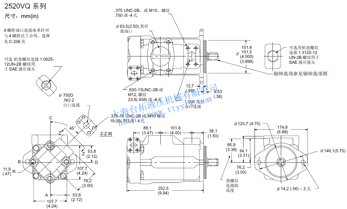 高壓雙聯子母葉片泵2520VQ尺寸圖下載 高壓雙聯子母葉片泵3520VQ尺寸圖下載