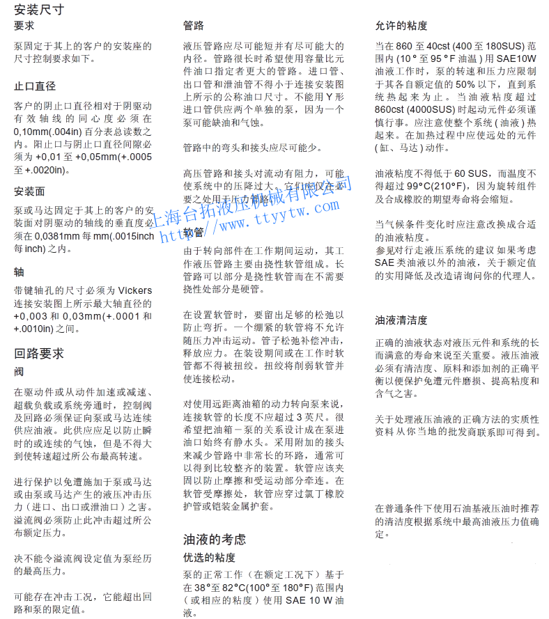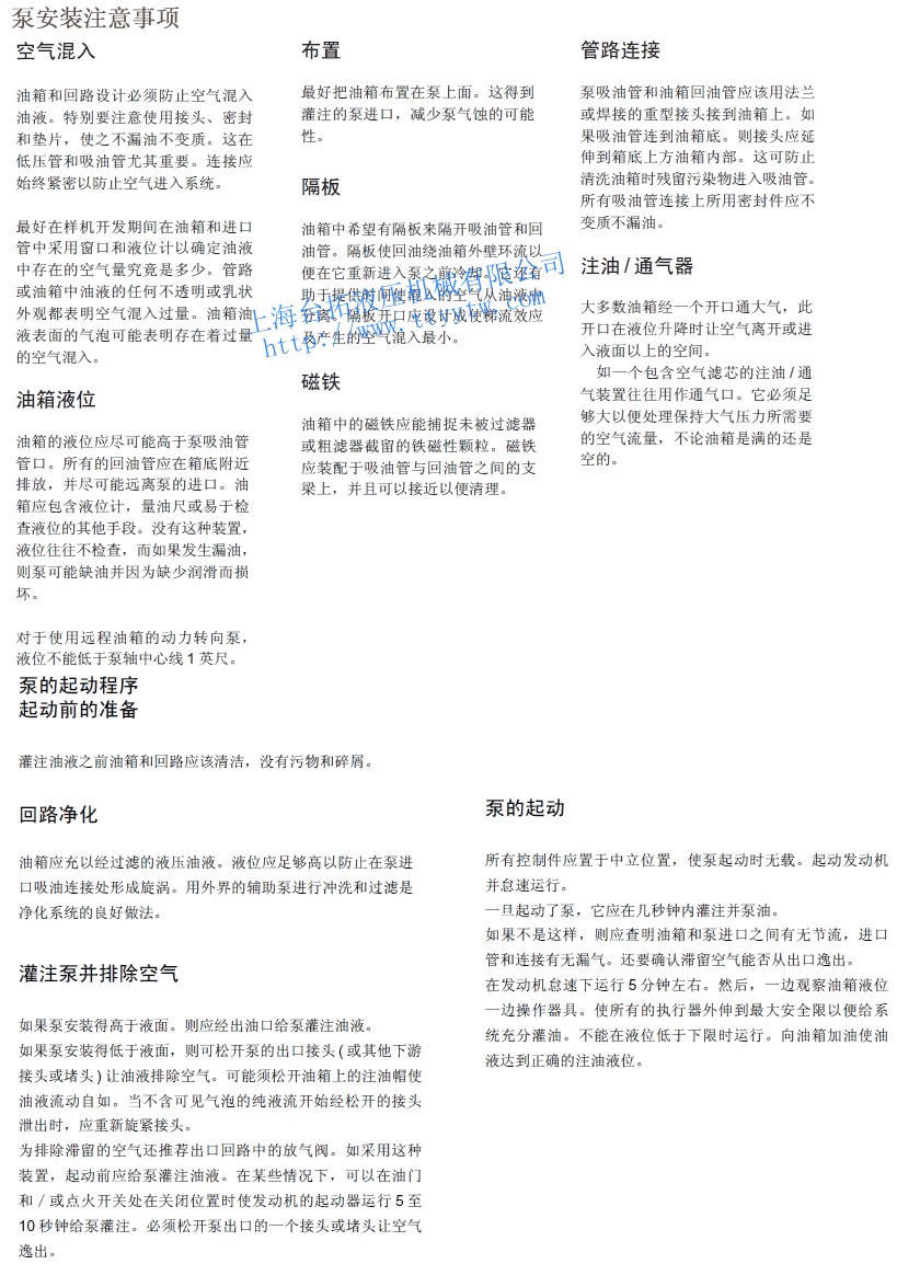 使用說明:1、高壓雙聯子母葉片泵冷啟動:當使用SAE10W油在860至54cst范圍內工作時,轉速和壓力應限制在它們各自額定的50%以內,直到系統熱起來。油液粘度超過860cst啟動時要特別注意,要使整個系統包括遠處的缸和馬達都熱起來。