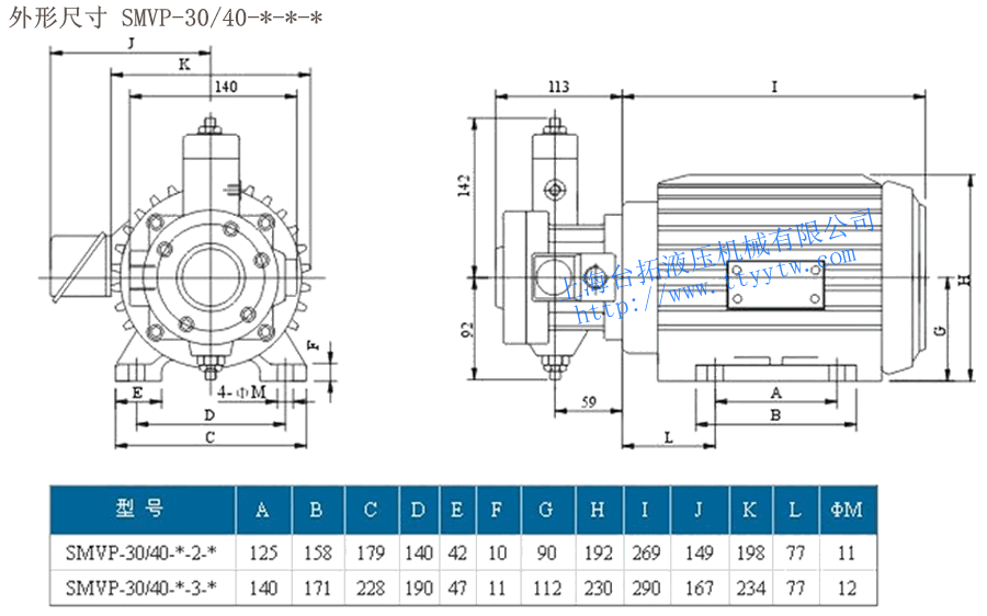 SMVP -30 -2 -5 -* -V 基本型式 排量(cm3/rev) 壓力調節范圍(bar) 電機功率 設計號 工作介質 N:定量