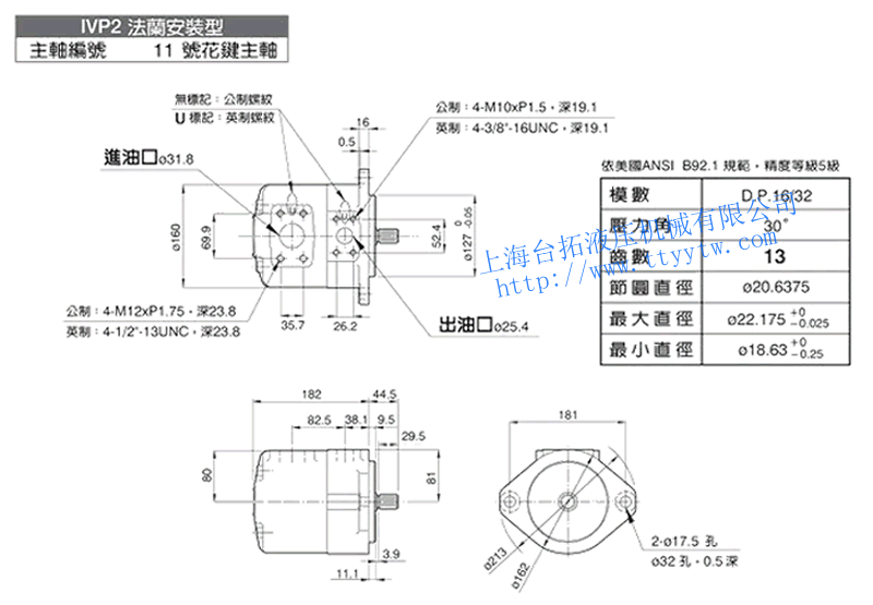 子母葉片定量泵IVP3(86號平鍵主軸/1&86號平鍵主軸)尺寸圖下載 子母葉片定量泵IVP3(11號花鍵主軸)尺寸圖下載