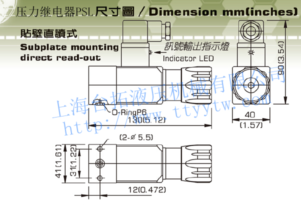 1、壓力繼電器PSL貼壁壓力直讀式,VDC電晶體感應開關,貼壁型安裝,為新型無接點式油電壓力開關,連接牙口為RC1/4",高負載:24VDC<100mA,特殊無接點感應開關輸出可與PRC或電腦程式讀出輸出時LED批示燈識別。