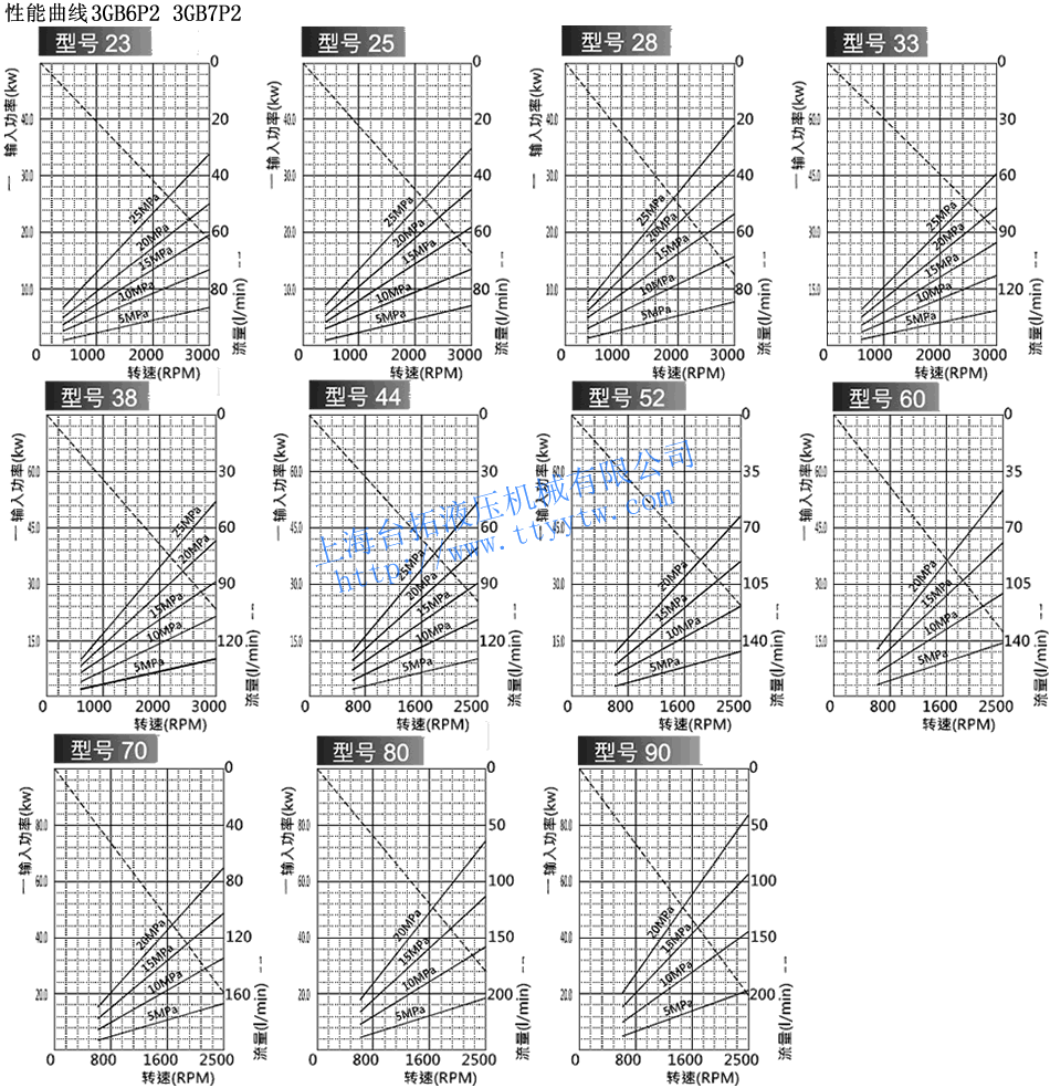 高壓齒輪泵3GB6P2,3GB7P2性能曲線