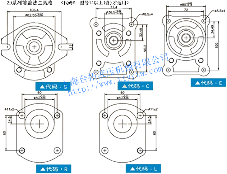 2 D G 1 B P 16 14 R 系列 型式/功能 前蓋法蘭規(guī)格 軸伸規(guī)格 2進(jìn)油口數(shù) 出入油口規(guī)格 前泵排量 后泵排量 旋向(R,L) 備注:1、R表示右轉(zhuǎn),面向軸伸順時(shí)針;L表示左轉(zhuǎn),面向軸伸逆時(shí)針。2、假設(shè)您選前蓋法蘭為G,軸伸代碼為1,二進(jìn)油口代碼為B,出入油口規(guī)格代碼為P,選用排量是16&14ml/r,旋向是右旋,正確的訂購(gòu)型號(hào):2DG1BP1614R。
