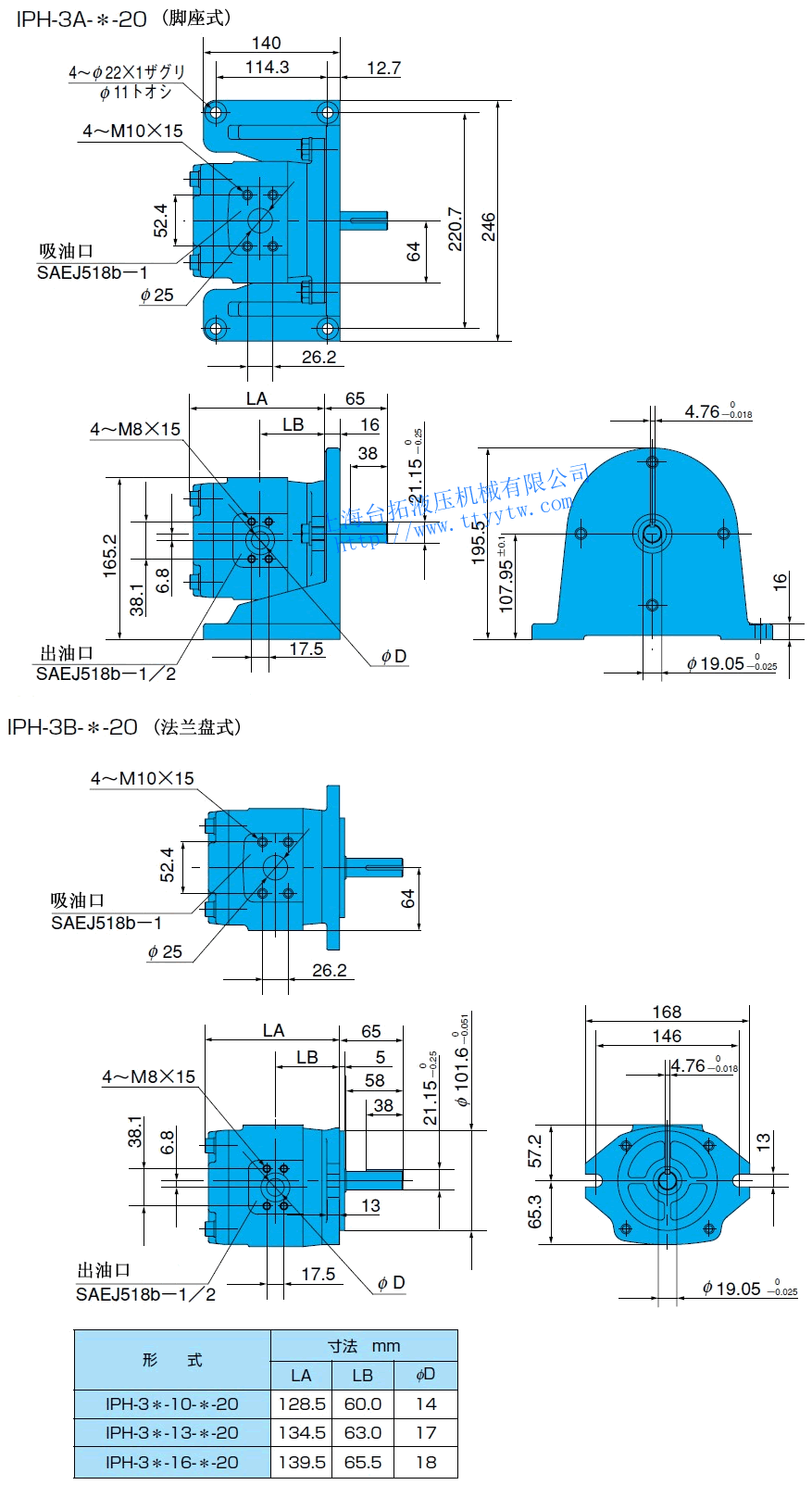內嚙合齒輪泵IPH-2A/B-*-11尺寸圖下載 內嚙合齒輪泵IPH-3A/B-*-20尺寸圖下載