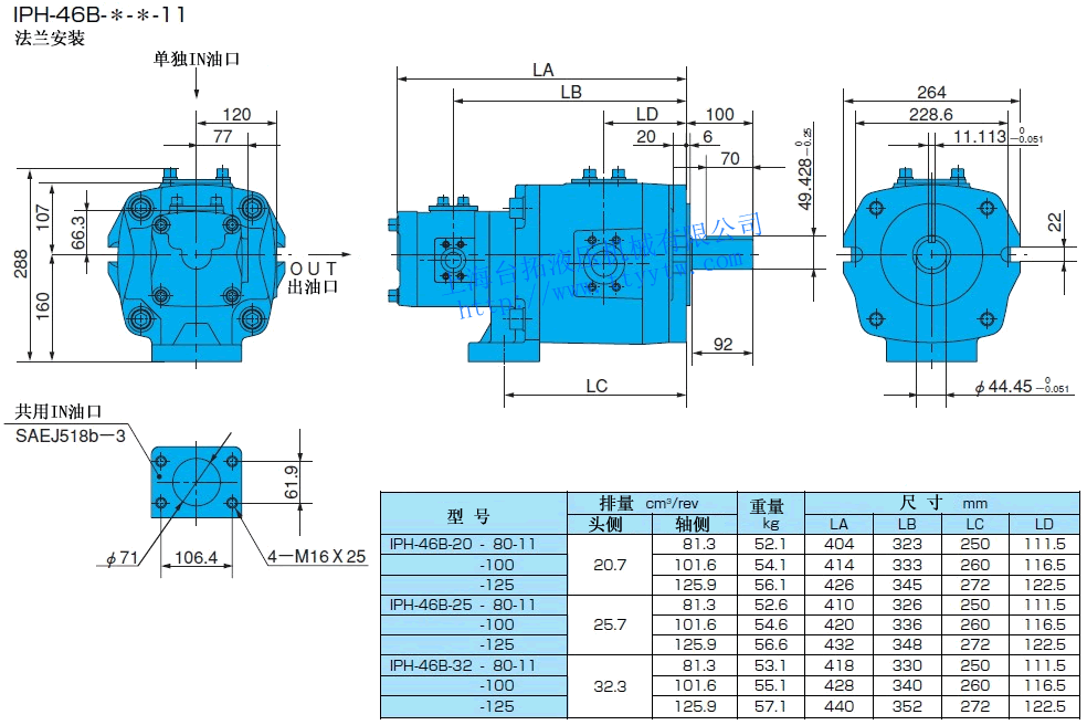 雙聯內嚙合齒輪泵IPH-46B-*-*-11尺寸圖下載 雙聯內嚙合齒輪泵IPH-55B-*-*-11尺寸圖下載