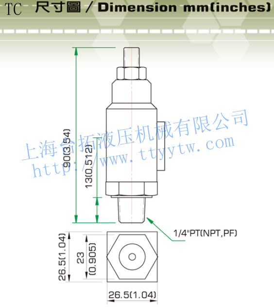 1、壓力繼電器TC一般型小型壓力開關(guān),微動(dòng)開關(guān)容量,牙口為1/4"PT(RC),1/4"NPT,1/4"PF(G)三種。