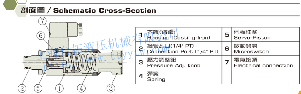 型 號 壓力調(diào)整范圍 bar 最高壓力 bar 重量Kg DNC-040K-22B 6~40 150 1.0 DNC-100K-22B 15~100 250 1.0 DNC-250K-22B 40~250 300 1.0 DNC-360K-22B 50~360 400 1.0 壓力繼電器DNC剖面圖