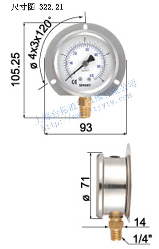 臺灣協鋼SKON充油式壓力表322.21尺寸圖