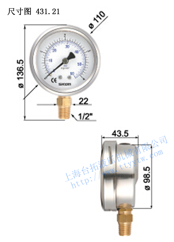 臺灣協鋼SKON充油式壓力表431.21尺寸圖