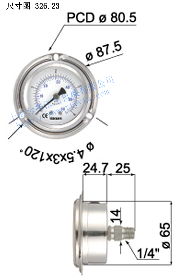 3、充油式不銹鋼壓力表326.23特別適用于食品業(yè)石化業(yè)等。