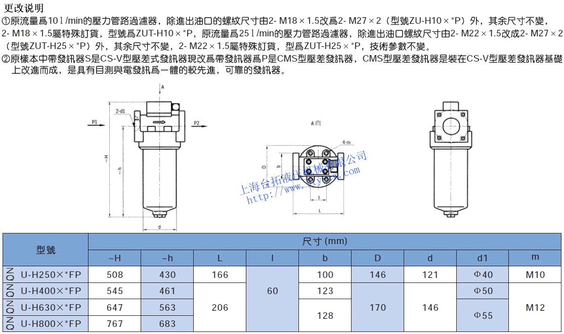 無:不帶發(fā)訊器壓力管路過濾器ZU-H,QU-H規(guī)格表