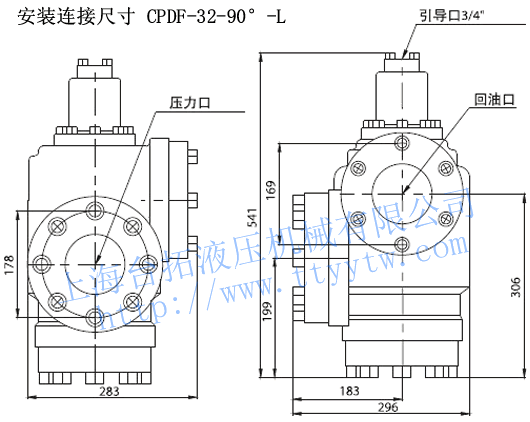 法蘭充液閥CPDF-32-90°-R安裝連接尺寸下載 法蘭充液閥CPDF-32-90°-L安裝連接尺寸下載