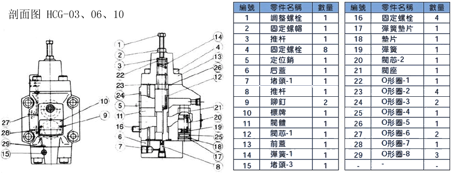 順序閥抗衡閥卸荷閥HG-03,06,10剖面圖下載 順序閥抗衡閥卸荷閥HCG-03,06,10剖面圖下載