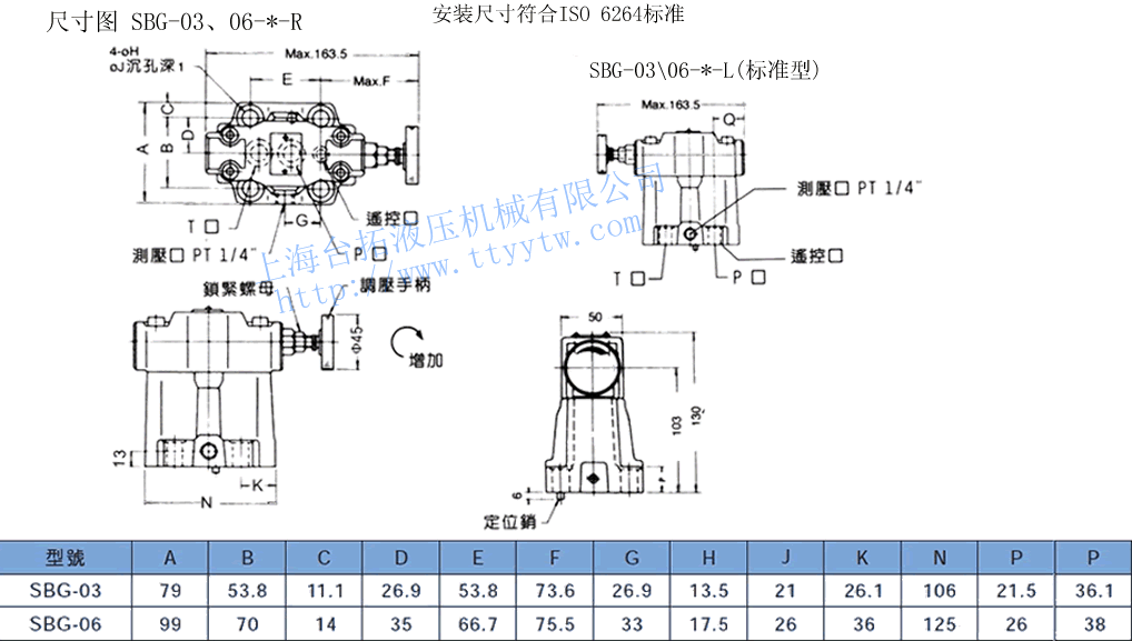 SB G -06 B L 系列號碼 固定型式 規(guī)格 壓力調(diào)整范圍 壓力調(diào)整手柄 先導(dǎo)式溢流閥