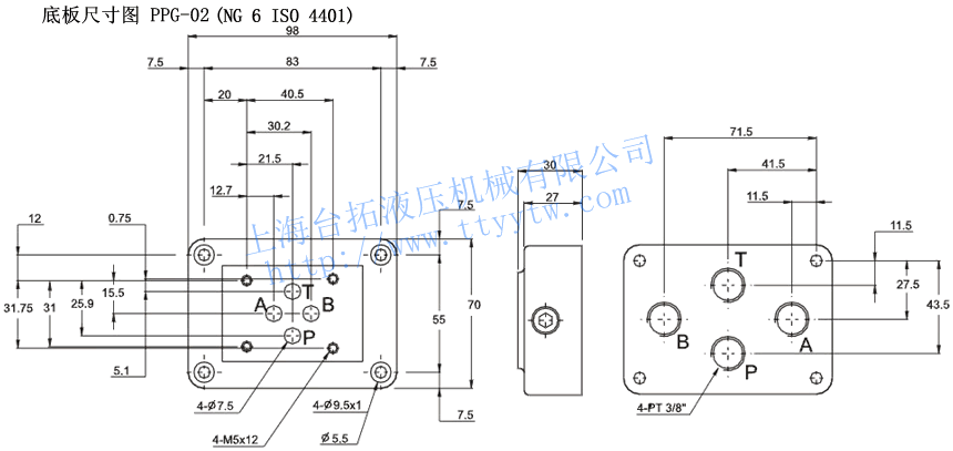 超高響應電液比例壓力閥PPG-02底板尺寸圖