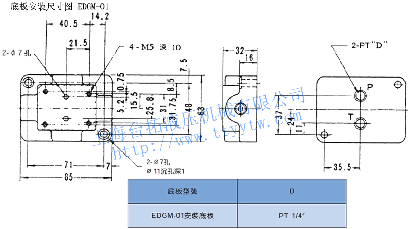 電液比例先導(dǎo)溢流閥EDGM底板安裝尺寸圖