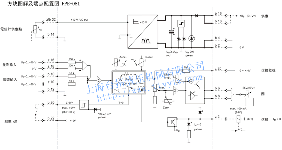 FPE-081 max. 30VA設定點電位計 RL≥1kΩ 供應:b/z32,+10V/20mA 輸入訊號 b 10:+10V z 10:=10V