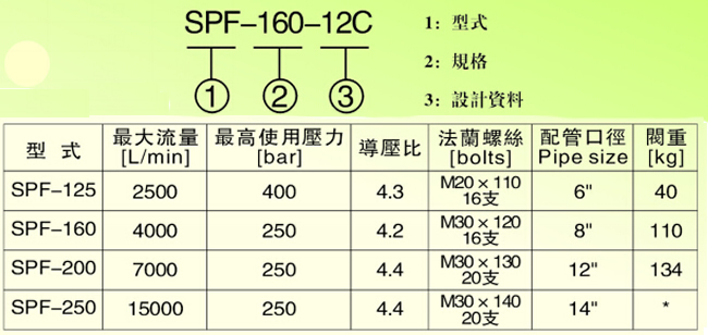 法蘭式滿油閥SPF型號(hào)規(guī)格表: