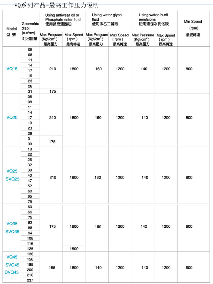 定量高壓單泵VQ15~VQ45規格表