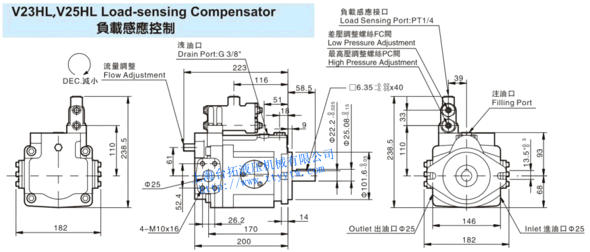 變量柱塞泵V23HK,V25HK尺寸圖下載 變量柱塞泵V23HQ,V25HQ尺寸圖下載
