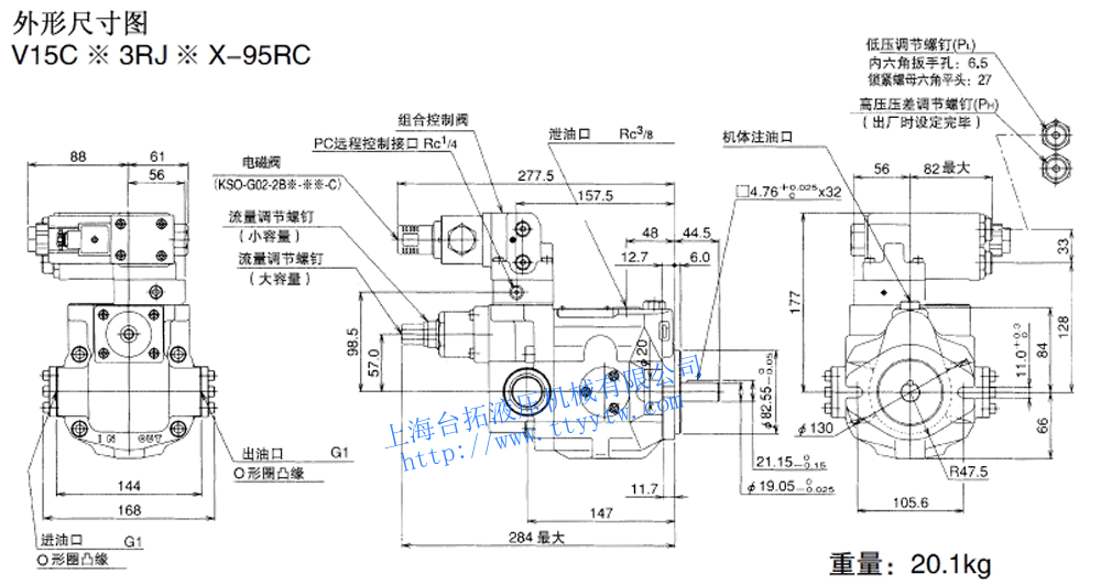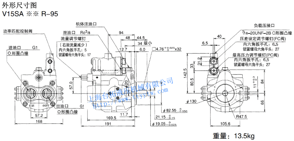 變量柱塞泵V15A*R-95尺寸圖下載 變量柱塞泵V15A3RX-95RC尺寸圖下載