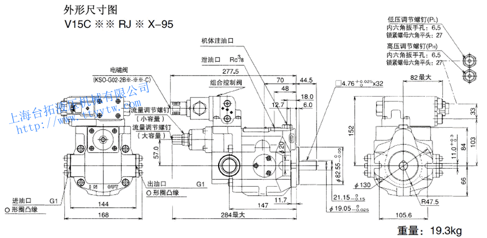 變量柱塞泵V15C*3RJ*X-95RC尺寸圖下載 變量柱塞泵V15D**R*X-95尺寸圖下載