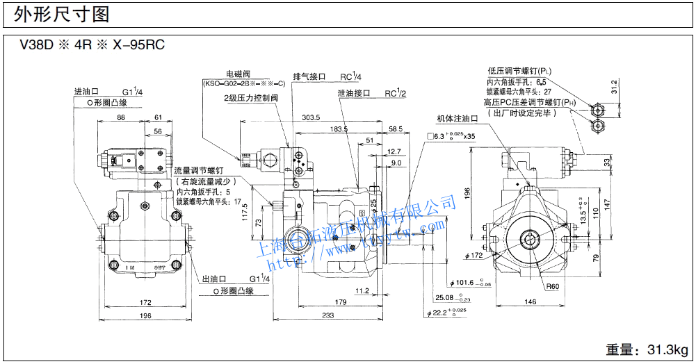 變量柱塞泵V38SA**RX-95尺寸圖下載 變量柱塞泵V38SA**R-95尺寸圖下載