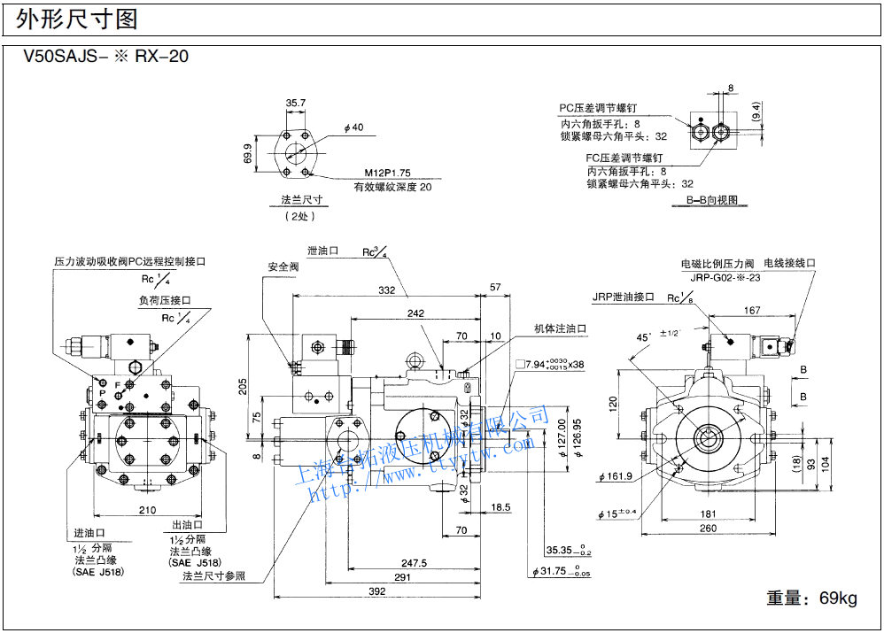 變量柱塞泵V50A3RX-20尺寸圖下載 變量柱塞泵V50SA**RX-20尺寸圖下載