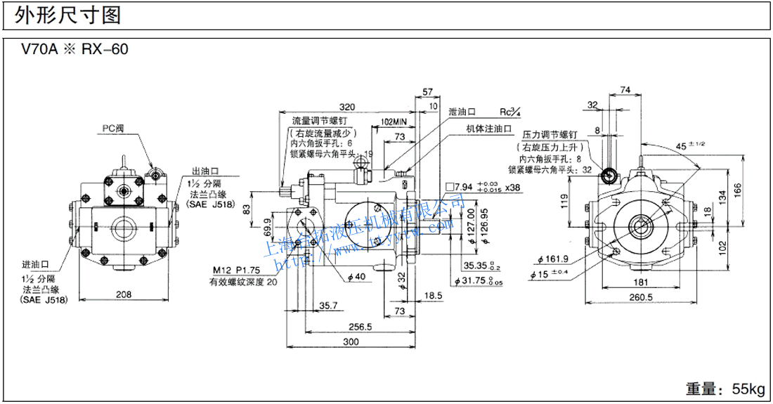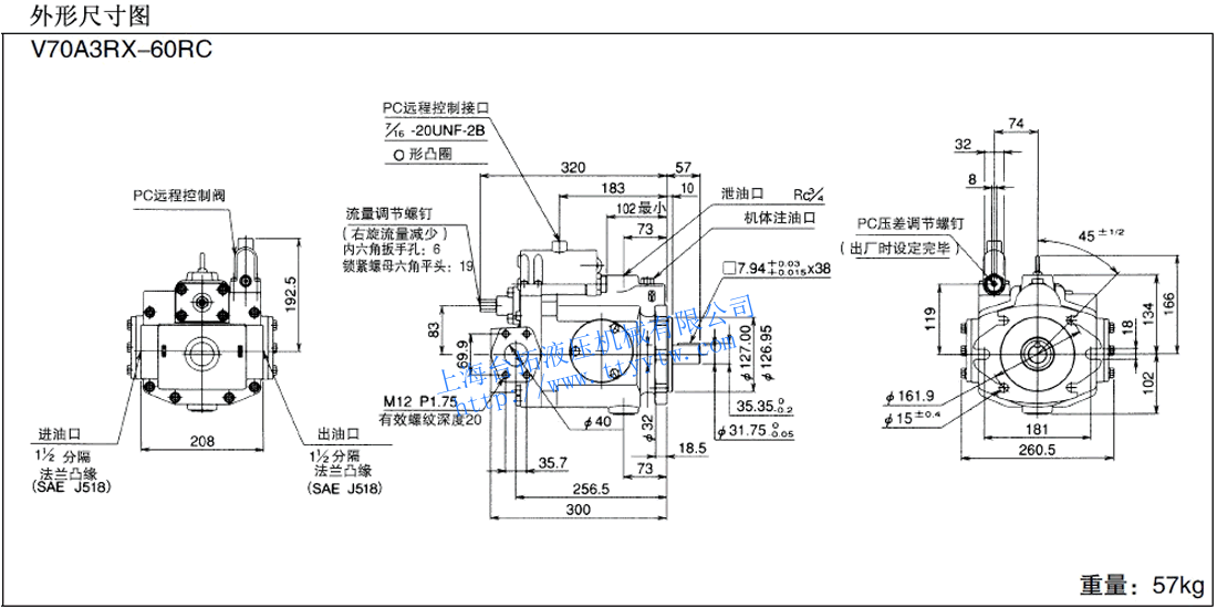變量柱塞泵V70A3RX-60RC尺寸圖下載 變量柱塞泵V70C**RHX-60尺寸圖下載