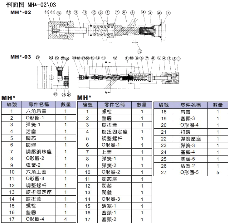 H:2.0~251.4 MHA-03 4.2 MHB-02 1.4 MHB-03 4.2 MHB-04 7.2 MHB-06 12.9 疊加式抗衡閥MHA/B-02,03剖面圖