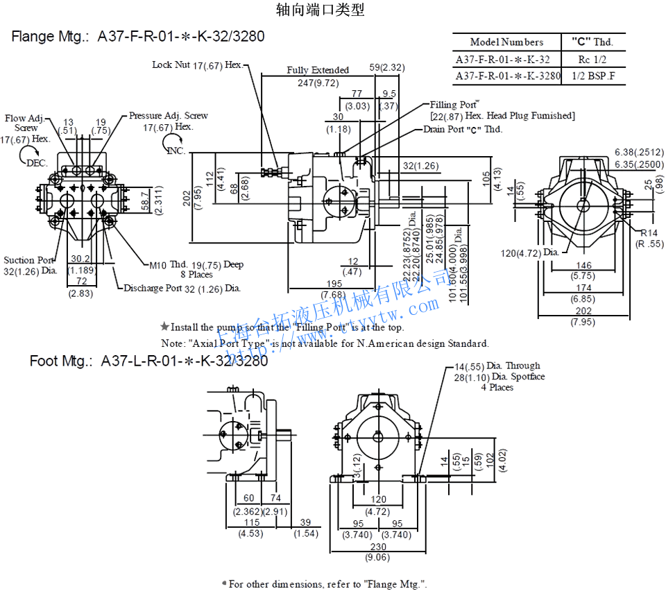 名稱管道法蘭組件號 螺紋連接 管道焊接 對接焊接 日本標準 歐洲標準 美國標準 日本標準 美國標準 日本標準 美國標準 A16-*-R-01 吸入口 F5-06-A-10 F5-06-A-1080 F5-06-A-1090 F5-06-B-10 F5-06-B-1090 F5-06-C-10 F5-06-C-1090 A22-*-R-01 出油口 F5-06-A-10 F5-06-A-1080 F5-06-A-1090 F5-06-B-10 F5-06-B-1090 F5-06-C-10 F5-06-C-1090 A37-*-R-01 吸入口 F5-10-A-10 F5-10-A-1080 F5-10-A-1090 F5-10-B-10 F5-10-B-1090 F5-10-C-10 F5-10-C-1090 A45-*-R-01 出油口 F5-10-A-10 F5-10-A-1080 F5-10-A-1090 F5-10-B-10 F5-10-B-1090 F5-10-C-10 F5-10-C-1090 A70-*R01 吸入口 F5-12-A-10 F5-12-A-1080 F5-12-A-1090 F5-12-B-10 F5-12-B-1090 F5-12-C-10 F5-12-C-1090 出油口 F5-08-A-10 F5-08-A-1080 F5-08-A-1090 F5-08-B-10 F5-08-B-1090 F5-08-C-10 F5-08-C-1090 A90-*R01 吸入口 F5-16-A-10 F5-16-A-1080 F5-16-A-1090 F5-16-B-10 F5-16-B-1090 F5-16-C-10 F5-16-C-1090 A145-*R01 出油口 F5-10-A-10 F5-10-A-1080 F5-10-A-1090 F5-10-B-10 F5-10-B-1090 F5-10-C-10 F5-10-C-1090 變量柱塞泵A系列尺寸圖