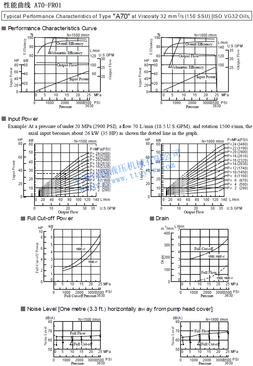 變量柱塞泵A系列性能曲線
