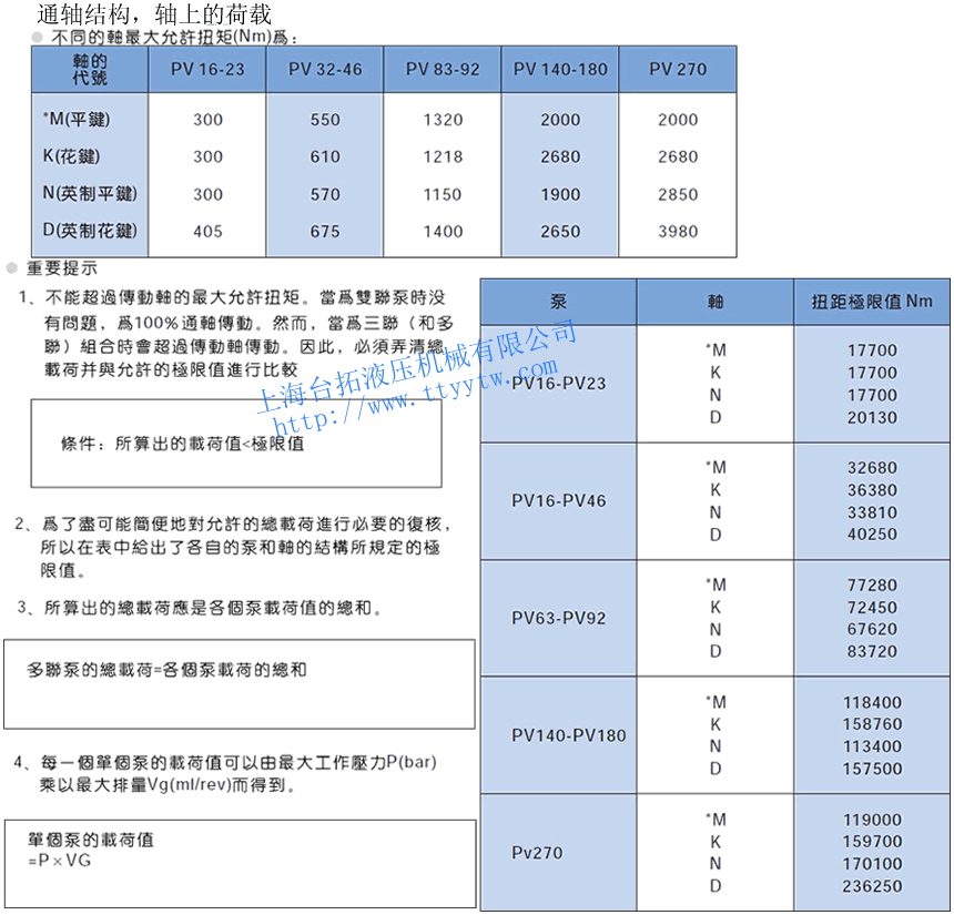 通軸結構,軸上的荷載