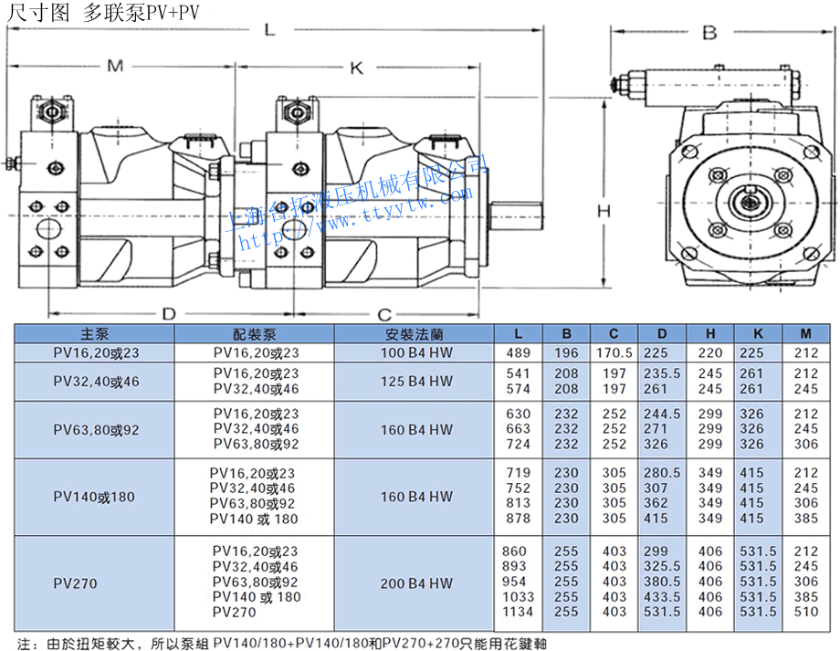 E:乙烯-丙烯10 雙聯式軸向柱塞泵PV系列規格表